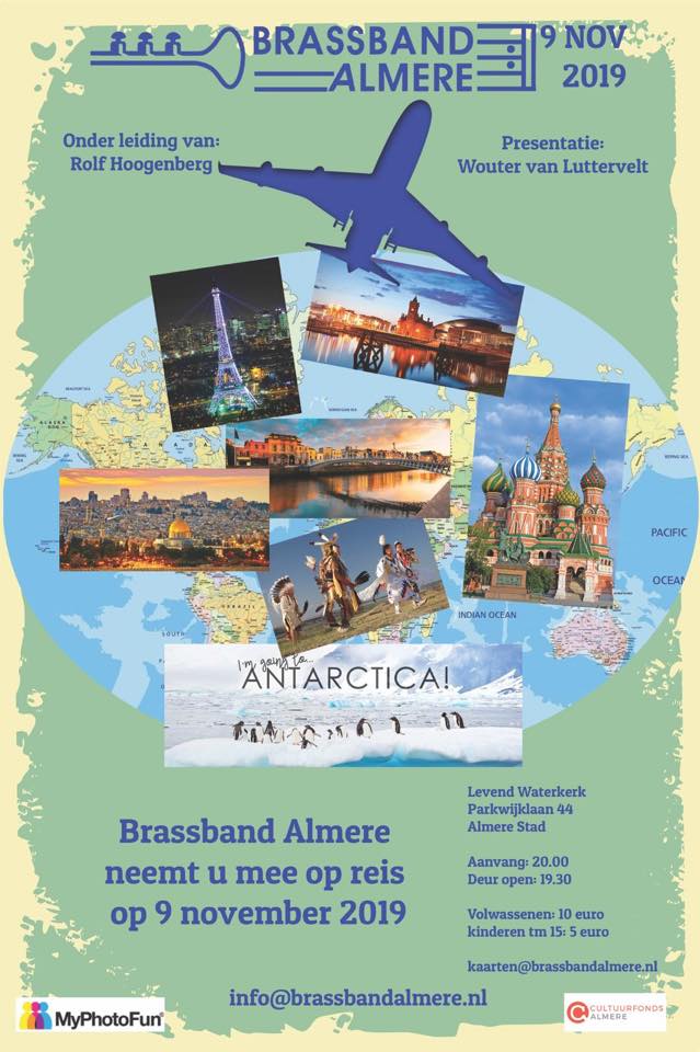 Onder leiding van Rolf Hoogenberg neemt Brassband Almere u mee op een muzikale reis rond de aarde.